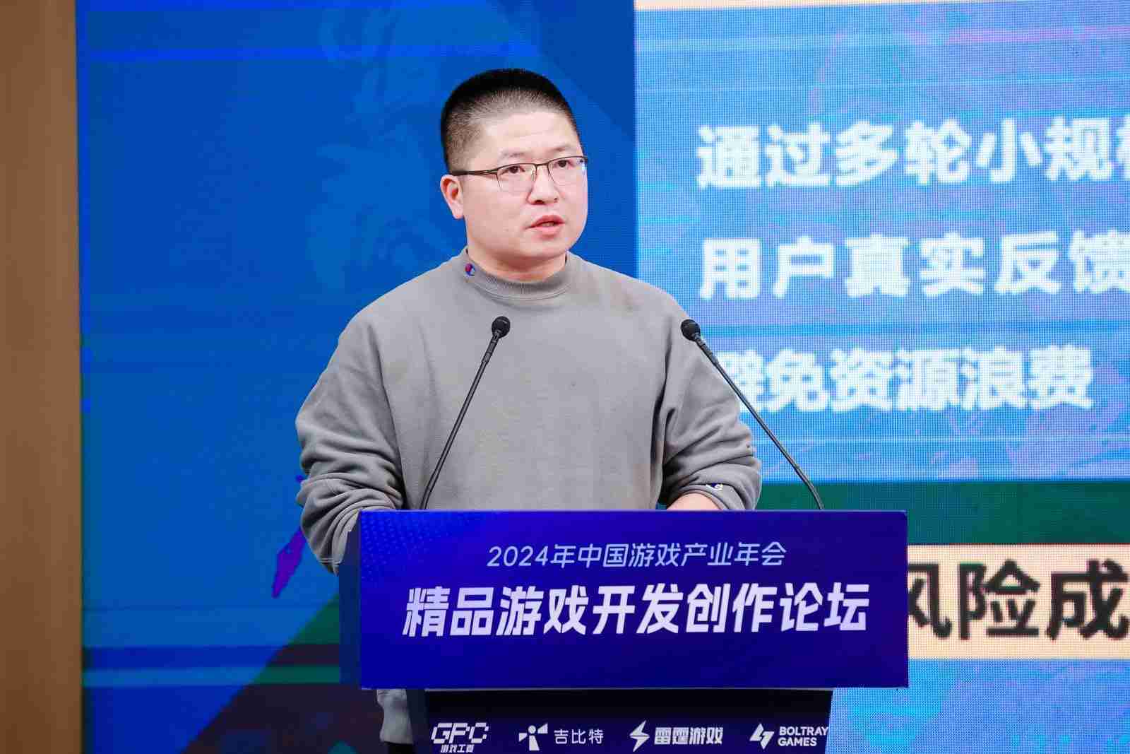 一竞技CTO胡兆彬以《小步快跑,,热爱赋能》为主题,,结合一竞技&雷霆游戏研发理念,,探讨游戏企业如何在变化中成长,,,,在竞争中突围。。胡兆彬表示,,在当今游戏产品同质化、、、、市场买量成本日益攀高的情况下,,,一竞技&雷霆游戏的应对策略是回到研发的本质——做让自己和用户都感到兴奋的产品。。在这一行动指南下,,,一竞技&雷霆游戏坚信,,,研发必须从兴趣和热爱出发,,只有制作人热爱自己的作品,,,,才能避免平庸,,脱颖而出。。。差异化道路是产品可以生存的唯一出路,,,,核心是让玩家感受到产品背后的创造力和诚意,,,,而不是市场上随处可见的“模板化设计”。。。。针对如何在研发过程中应对不确定性,,胡兆彬分享了“小步快跑”的方法论,,即通过快速试验和反馈,,找到正确的方向,,,,避免资源浪费,,,,并就研发实践中遇到的问题,,提出团队的纠偏措施和应对心法。。。。