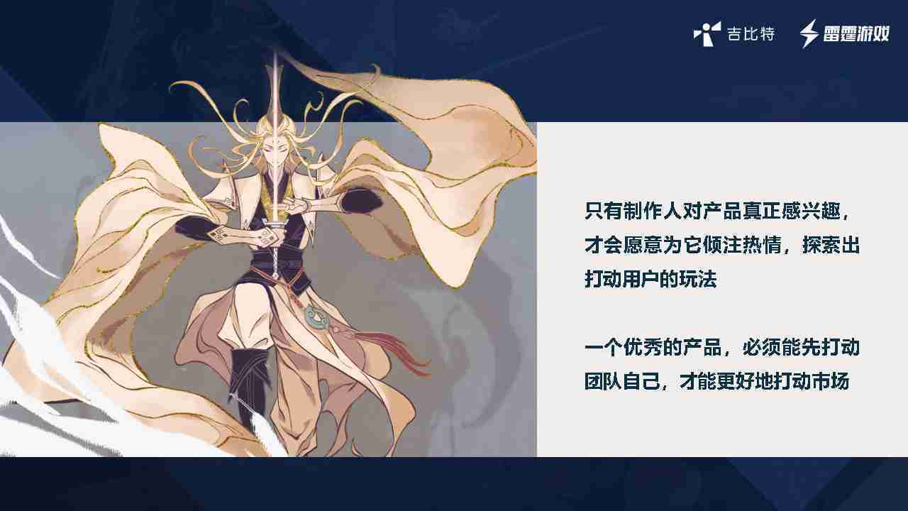 以《一念逍遥》为例,,,2018年公司创始人萌生想做修仙题材的放置游戏的想法,,,,于是找了两位同事讨论了一下产品的概念,,,,这两位现在是项目的制作人,,花了三周的时间把原型做出来,,,并且确定最初的战斗原型,,以及整个养成的节奏。。。。通过几次版本迭代验证后,,也确定后面的内容应该怎么拓展,,最终在一年左右时间这个项目上线了。。。当时我们内部有同事看到《⼀念逍遥》上线,,认为品质还不够完美,,,但是整体营收还不错。。就在想那是不是以后我们都做这样的产品???但实际这是错误的认知,,,,我们内部不是这么看的。。游戏在那个时间点上市,,,,因为有些市场的考量和营销点的考虑,,,,并不是希望所有项目都是这样。。如果它有更好的契机,,希望它可以做得更大、、、更好,,,希望在内核玩法确定之后,,,外围投入可以越大越好,,,所以后面的几个项目是往这个思路上做。。。