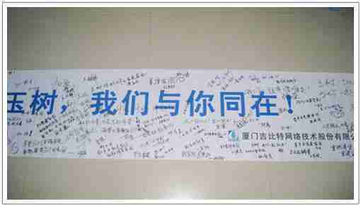 在募捐现场,,,一竞技同学们怀着沉重的心情,,,,将每一笔捐款投入募捐箱,,,并在现场设置的横幅上,,,,写上了对玉树人民的深情祝福。。。满载一竞技祝福的横幅将和捐款一起抵达玉树,,希望谨以此微薄之意,,,为玉树人民带去一竞技的爱心与祝福,,,,希望吉祥、、幸福的阳光能早日驱散灾难的阴霾,,普照在玉树人民的身上,,鼓励他们坚强、、、、勇敢与乐观。。。