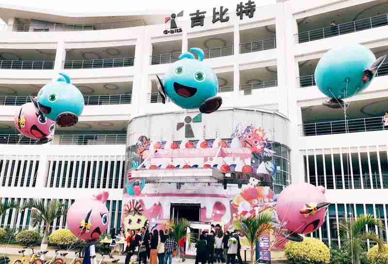 12月15日,,为了庆祝《不思议迷宫》一周岁生日,,,,冈布奥们准备了众多花式庆生活动:::厦门一竞技大楼变身巨型蛋糕、、女仆小姐姐为大家奉上美味小蛋糕、、、更有大头冈布奥飞上天……引来不少冒险者身亲临现场为冈布奥打Call!!!